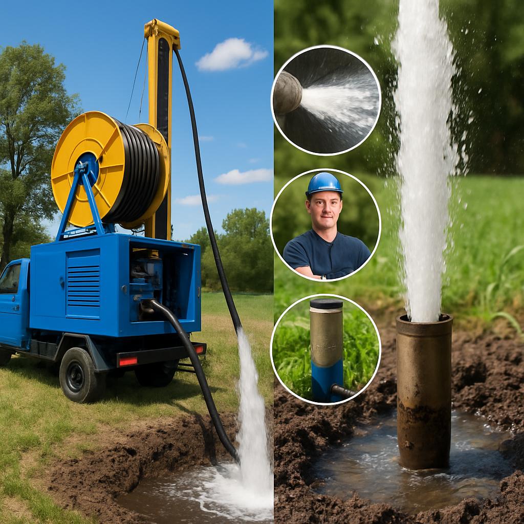 (Здесь в реальности рекомендуется вставить изображение, например, скважины в сельской местности, оборудование для гидродинамической промывки, а также вымытые чистые скважины из разных регионов России.)